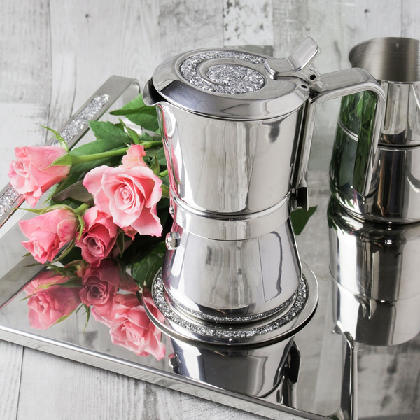 - Ekskluzywna stalowa taca wysadzana kryształami Swarovski do serwowania kawy, herbaty, alkoholu oraz posiłków włoskiej marki Giannini Bijoux